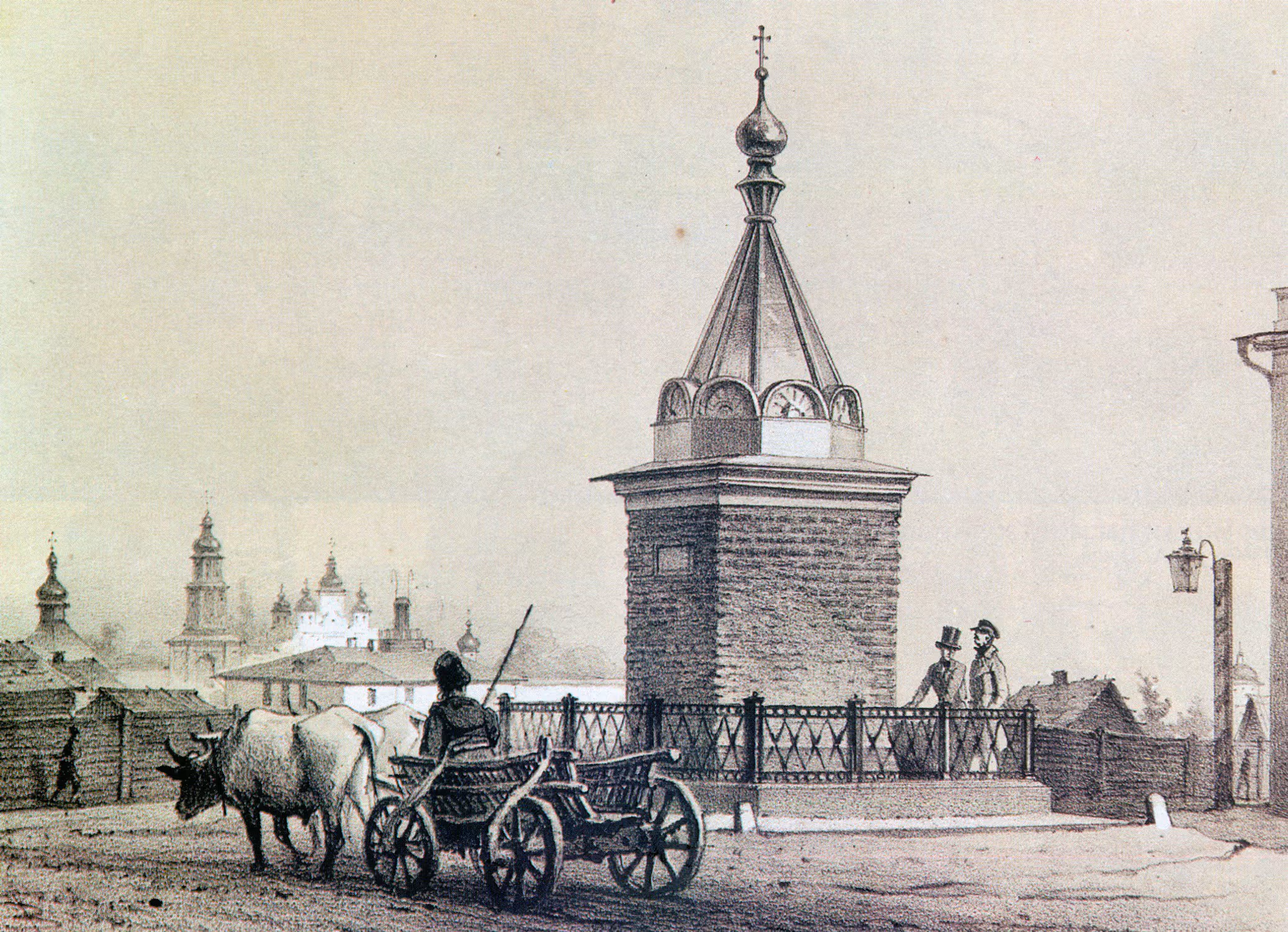 Lex Залишки храму Ірини. Один із стовпів Ірининського монастиря часів Ярослава Мудрого у 1852 р. оформлений як пам'ятник. Малюнок В.Тімма, 1858 рік.