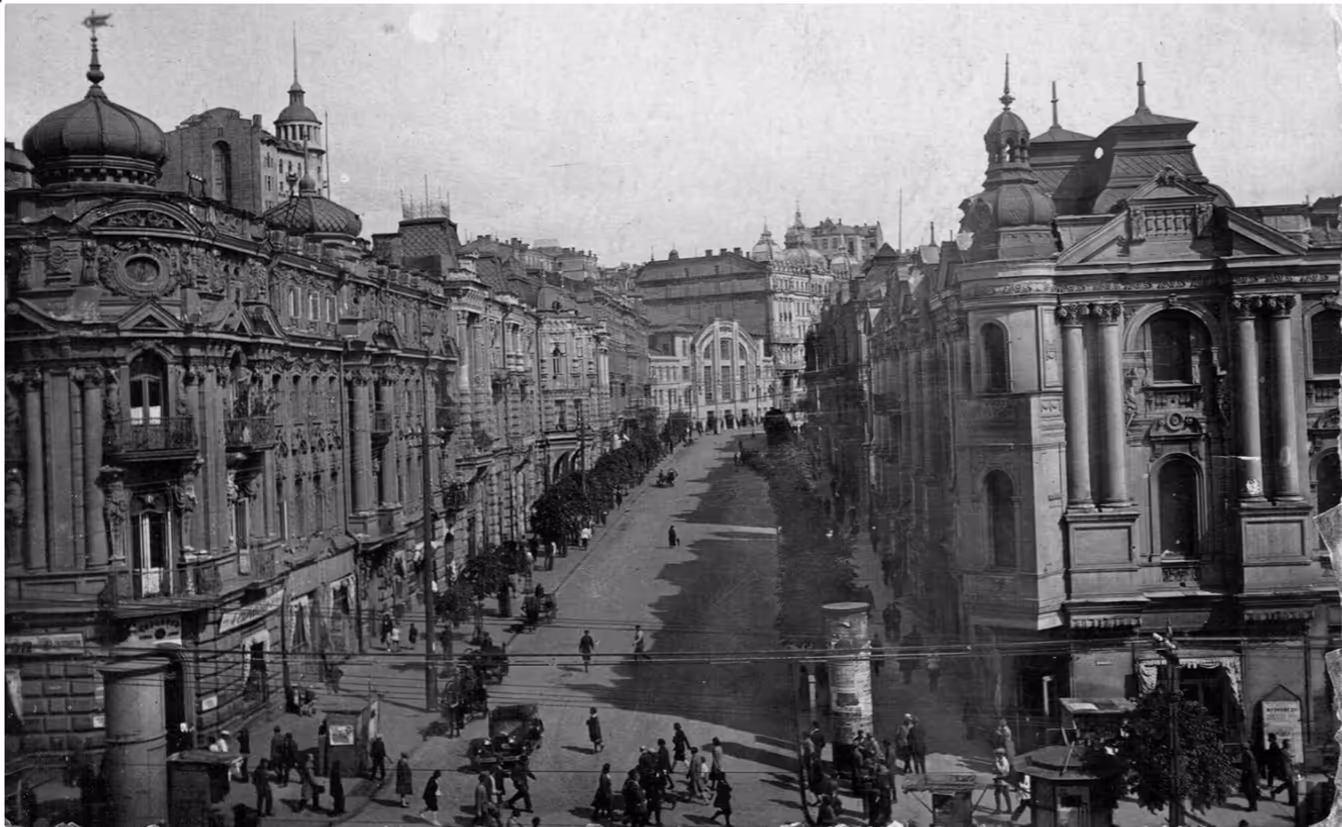 Lex Вулиця В. Городецкого перед початком Другої світової війни. Тоді вона називалася іменем Карла Маркса. Унікальний ансамбль розкішних житлових та громадських будівель, що не мав аналогів у місті – "Київський Париж".