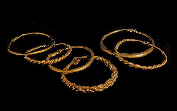 Bahati Гривни шийні (XII – початок XIII століття). Зі скарбу поблизу села Сахнівка, Черкаська область, 1900 рік. Зараз зберігаються в музеї історичних скарбів України.