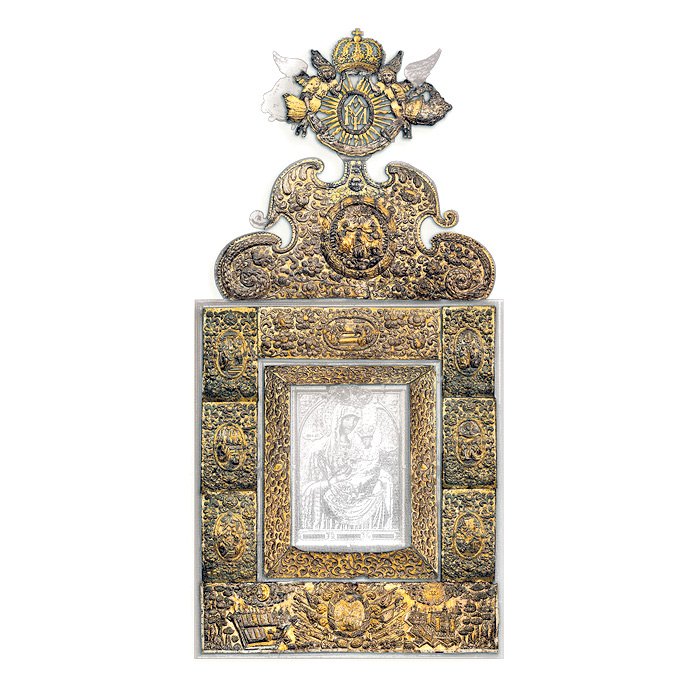 Bahati Шата кіота (оклад) Чернігівської ікони Іллінської Богоматері. 1690-ті роки. Срібло, золочення. В нижній частині шат викарбуваний герб Івана Мазепи з літерами: «М.І.Г.В.Ц.П.В.З.». Зараз зберігається в Чернігівському обласному історичному музеї ім.В.Тарновського.