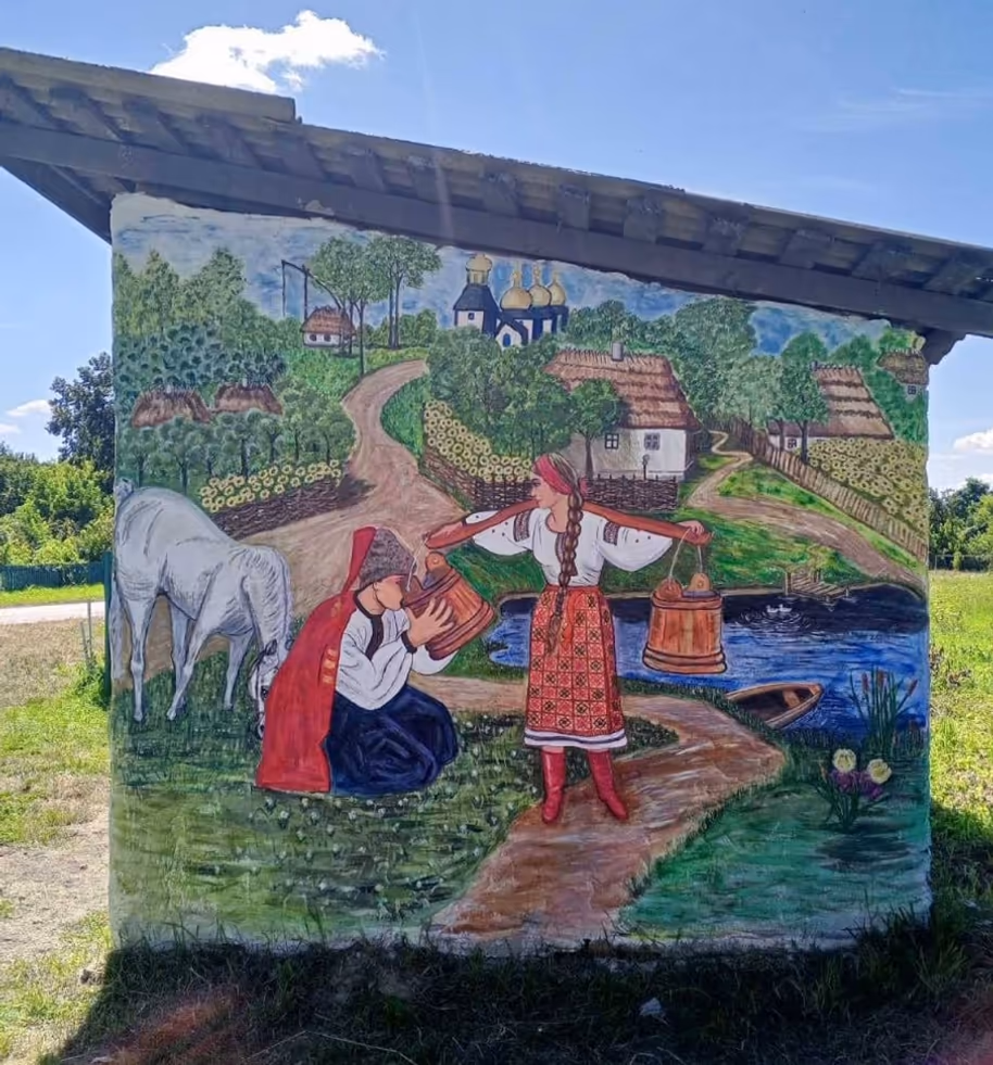 vidish Зупинка громадського транспорту у селі Лави на Чернігівщині. Художниця Ніна Скляр (місцева бібліотекарка).