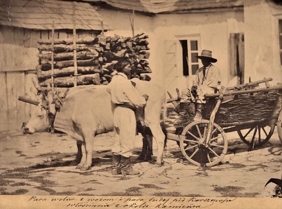 ElGranjero Пара волів з возом під корчмою на околицях Кам'янця-Подільського. Світлина 1870-1880-ті роки. Фотограф Михайла Грейма.