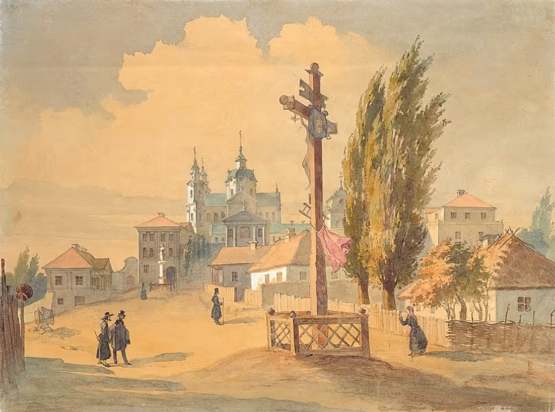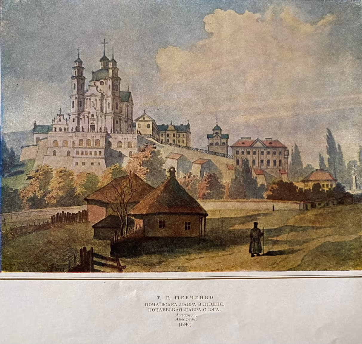 vidish Почаївська лавра з півдня. Репродукція з видання: Шевченко-художник: альбом вибраних творів. Київ,1954. Художник Тарас Шевченко.