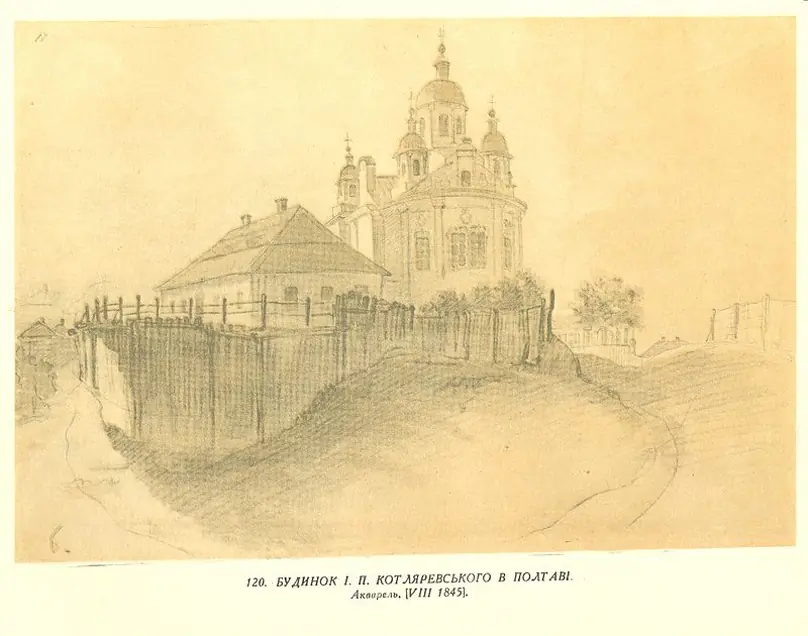 Будинок І. П. Котляревського в Полтаві (папір, акварель, 16,7 × 24,4), серпень 1845 року.