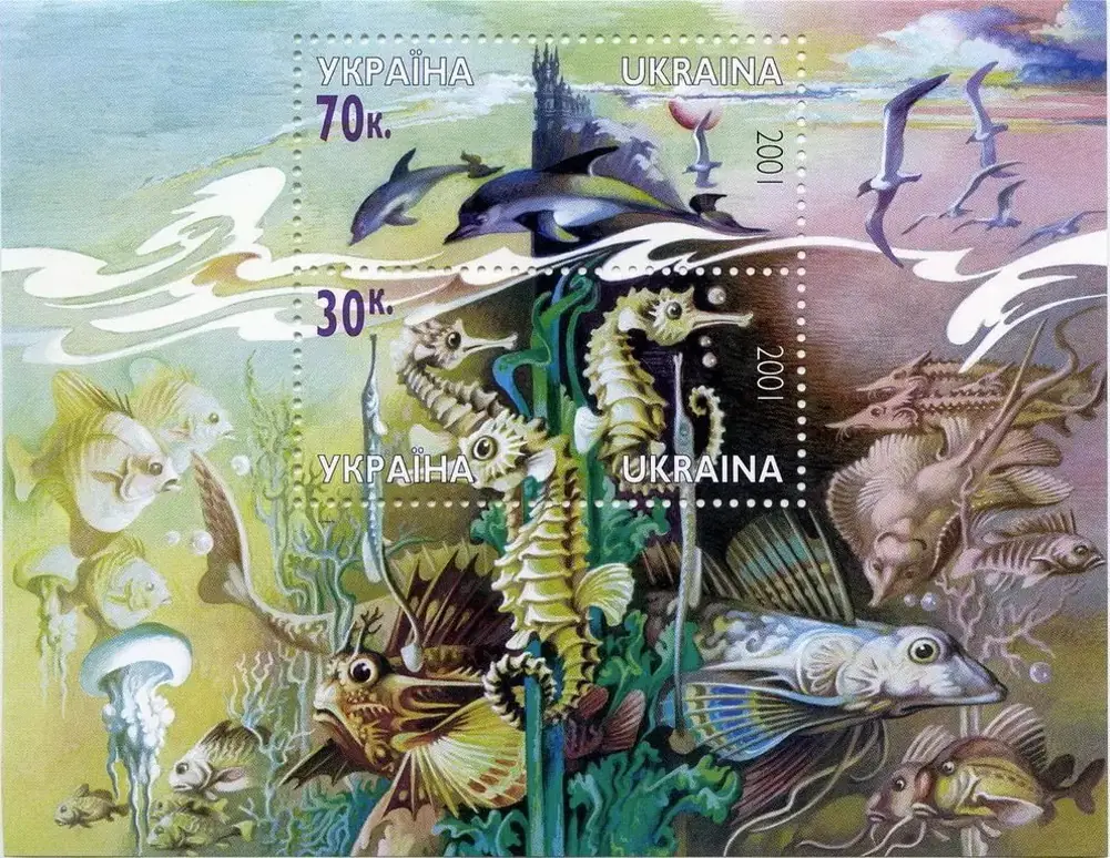 vidish Зчепка марок присвячена дню Чорного моря випущена Укрпоштою в 2001 році номіналом 30коп та 70 коп.
