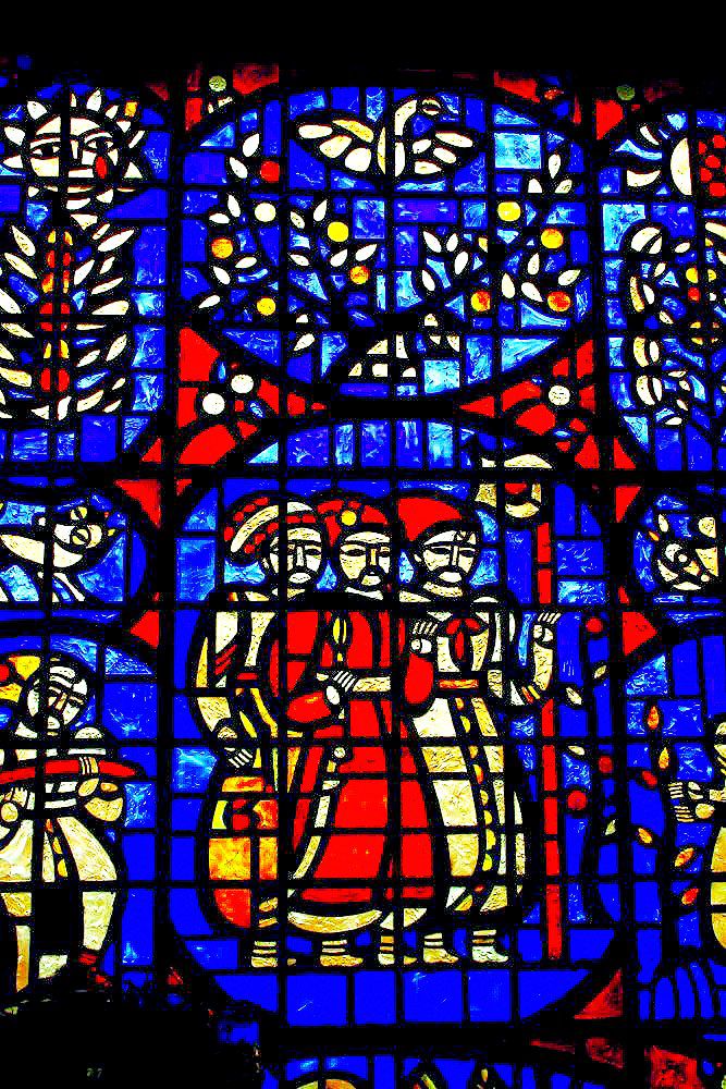 Фрагмент вітражу "Наша пісня – наша слава". Художник Іван-Валентин Задорожний.